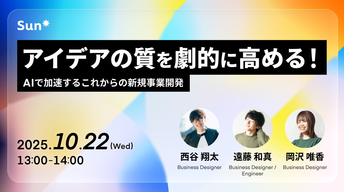 東京大学工学部システム創成学科システムデザイン&マネジメントコース卒業。東京大学大学院工学系研究科システム創成学専攻修士課程修了。Biz、Tech、Creativeの広く培った知見を活かし、Sun*に参画後は、新規事業創造、サービスデザイン、開発等にBusiness Designer、Engineer、PMとして幅広く従事。また、AI(LLM)と人間の共創によって新規事業を創造する方法論を確立して事業化(AI*deation、HEART Development、Ailla)。