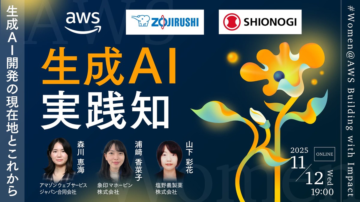 【象印マホービン×塩野義製薬×AWS】生成AI開発の現在地とこれから―開発生産性を高める、現場での生成AI実践知 #Women@AWS Building with Impact