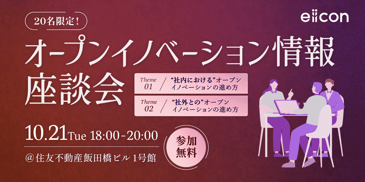 この度、株式会社eiiconでは 「大企業オープンイノベーション担当者向け」オープンイノベーション情報に関する座談会を開催する運びとなりました。