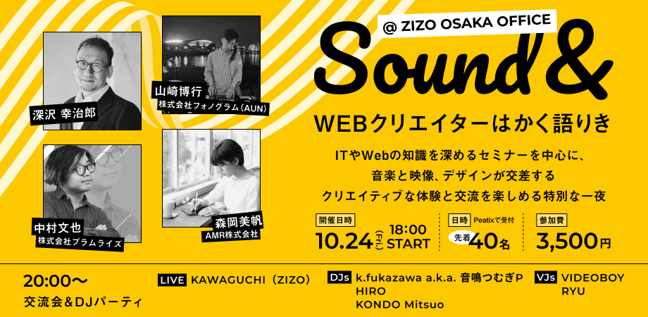 【セミナー+交流会】Sound& - WEBクリエイターはかく語りき - at ZIZO