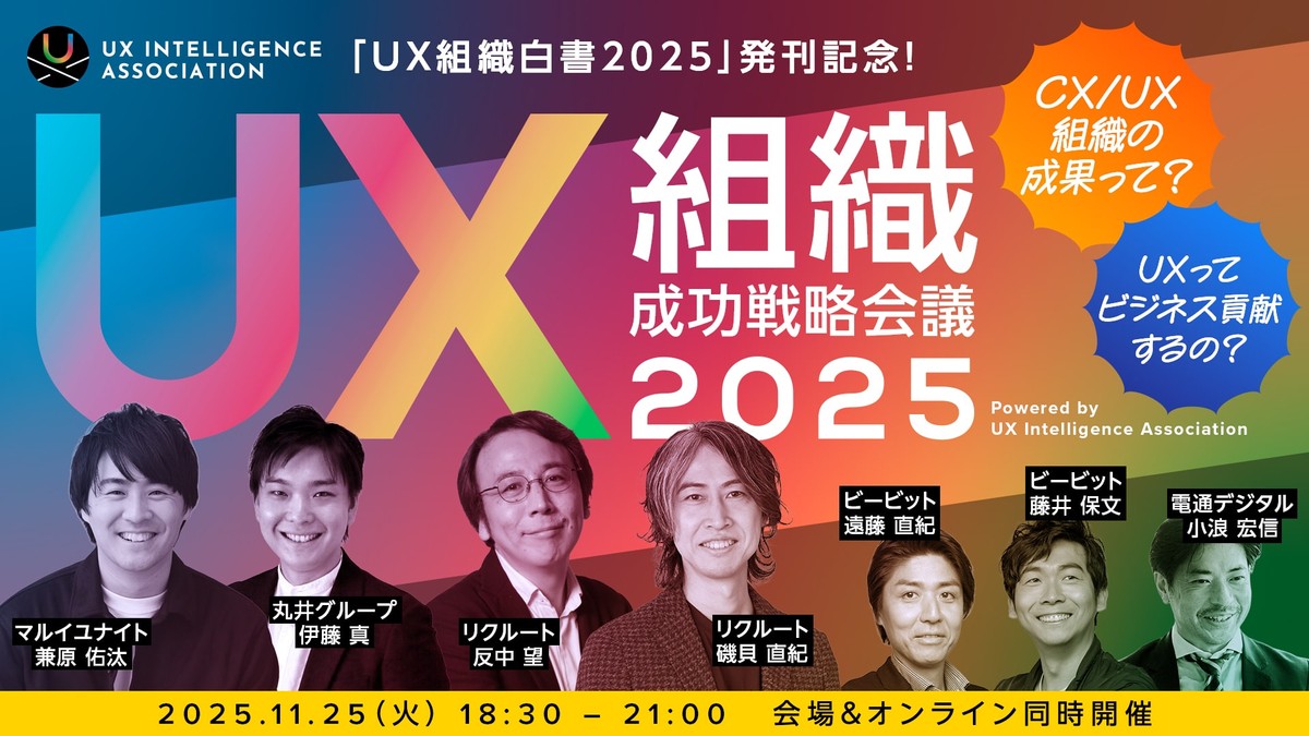 一般社団法人UXインテリジェンス協会(以下:UXIA)は、「UX組織白書2025」の発刊を記念して、2025年11月25日(火)、「組織開発」をテーマにCX/UX組織の成功について考えるイベント「UX組織戦略会議2025」を開催します。