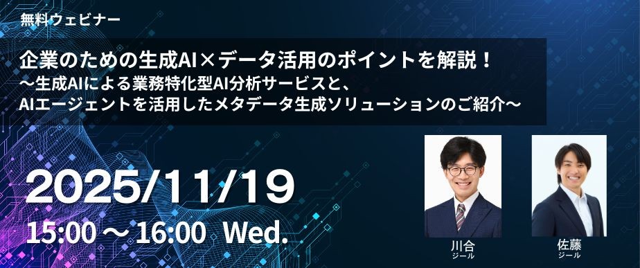 企業のための生成AI×データ活用のポイントを解説~生成AIによる業務特化型AI分析サービスと、AIエージェントを活用したメタデータ生成ソリューションのご紹介~