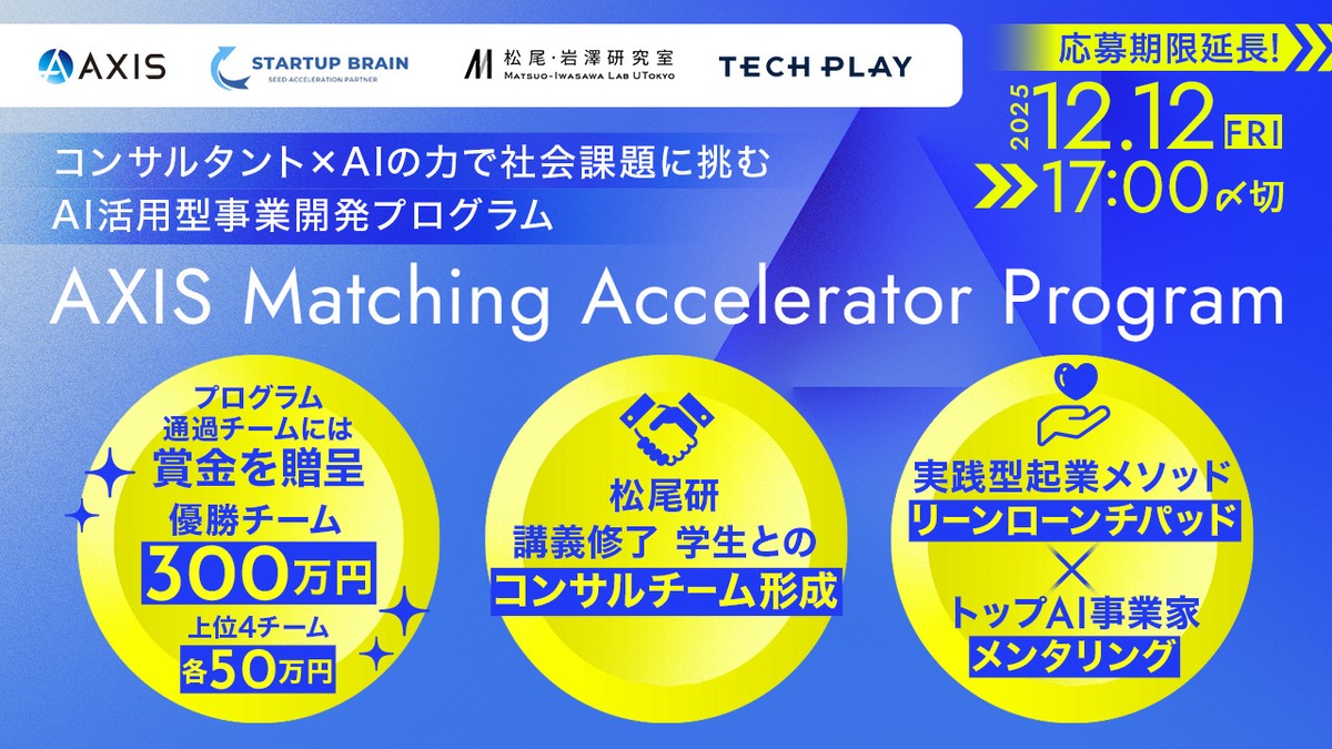 AI時代の起業家を育てる、伴走型事業開発プログラム AXIS Matching Accelerator Program【応募期限延長!12/12(金)まで】