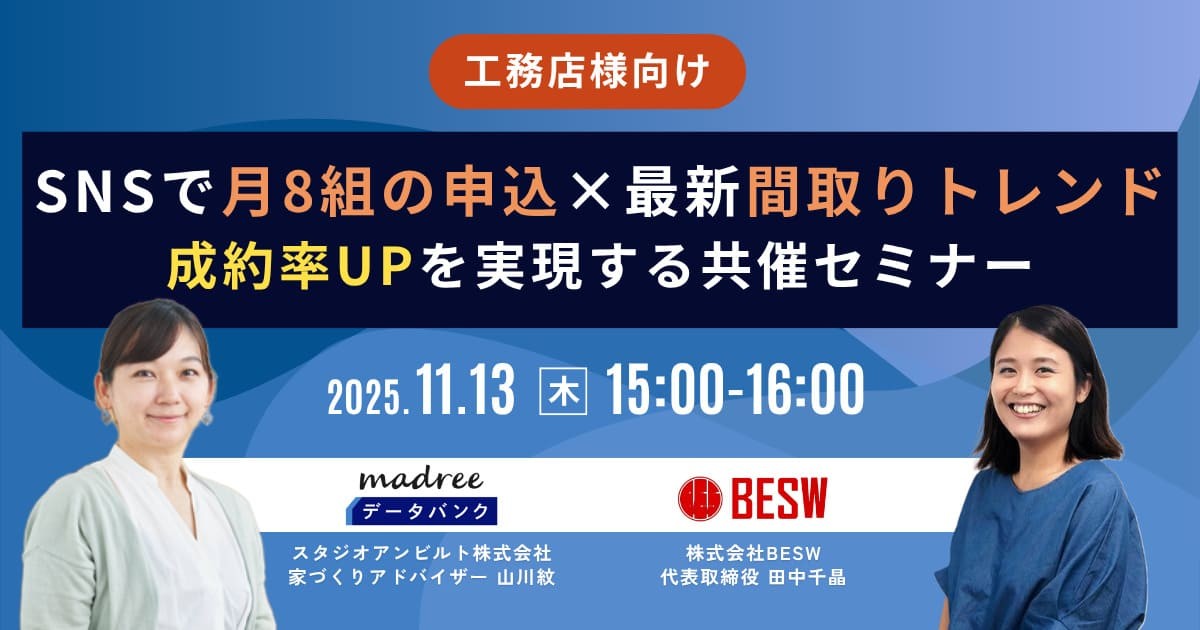 工務店様向け!SNSで月8組の申込×最新間取りトレンドで成約率UPを実現する共催セミナー