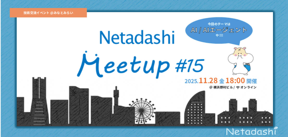 Netadashi Meetupは、横浜・みなとみらいエリアを中心に技術に興味がある人が集まって交流することを目的とした会です。