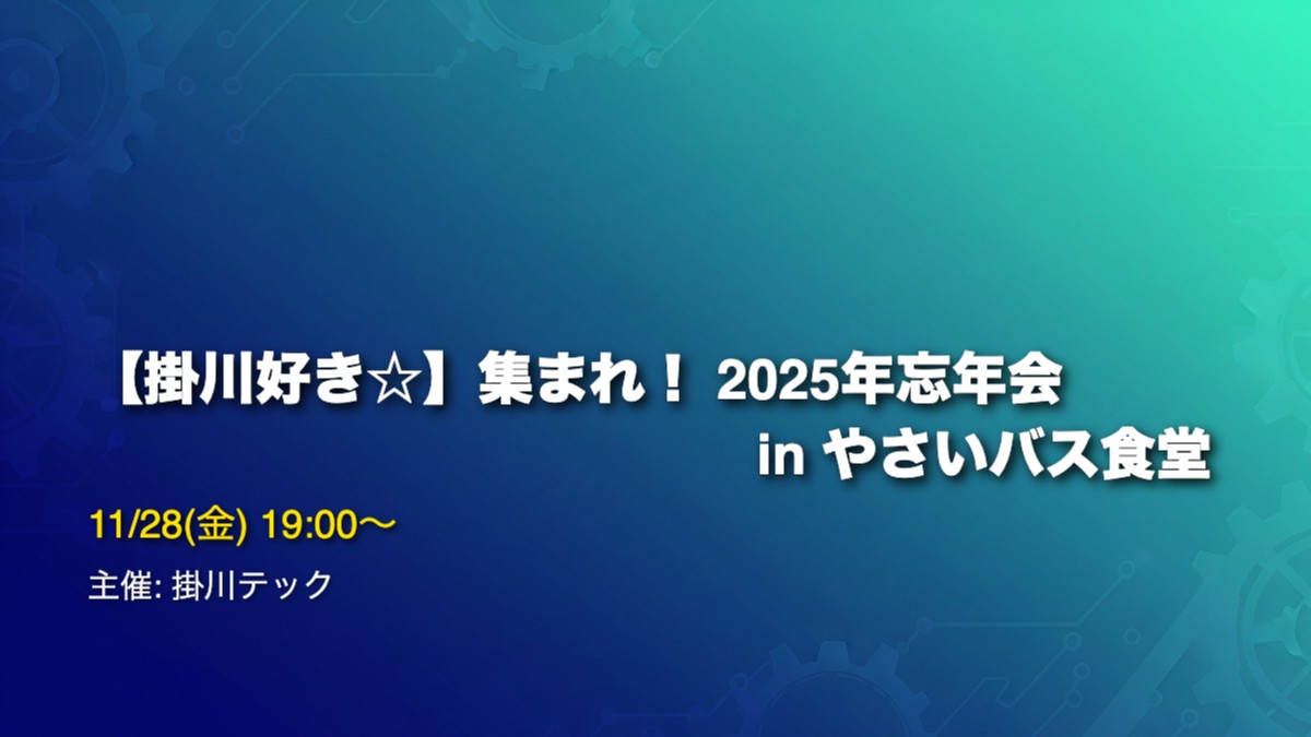 掛川市を中心に、遠州地域のIT人材が集う気軽な忘年会です。