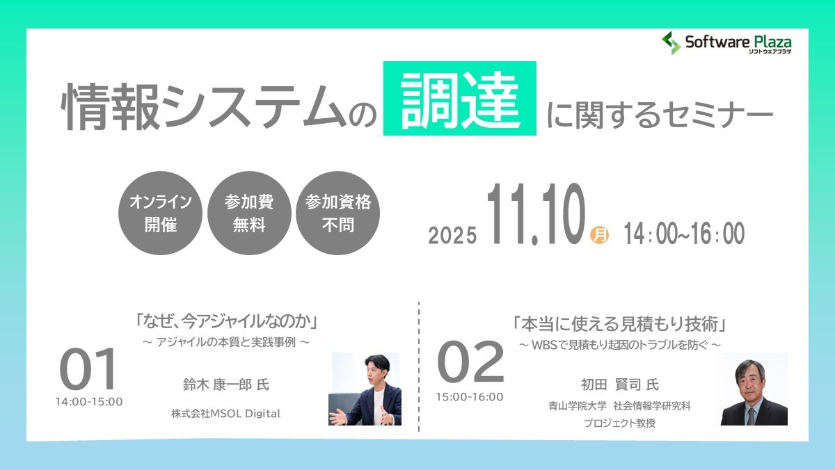 本セミナーでは、プロジェクトの現場で直面する課題や意思決定のポイントを、実例を通じてわかりやすく解説いたします。情報システムの導入・運用に携わる皆様にとって、日々の業務に活かせるヒントが得られる内容となっております。ぜひこの機会にご参加ください。プログラムの詳細はこちらのパンフレットをご参照ください。