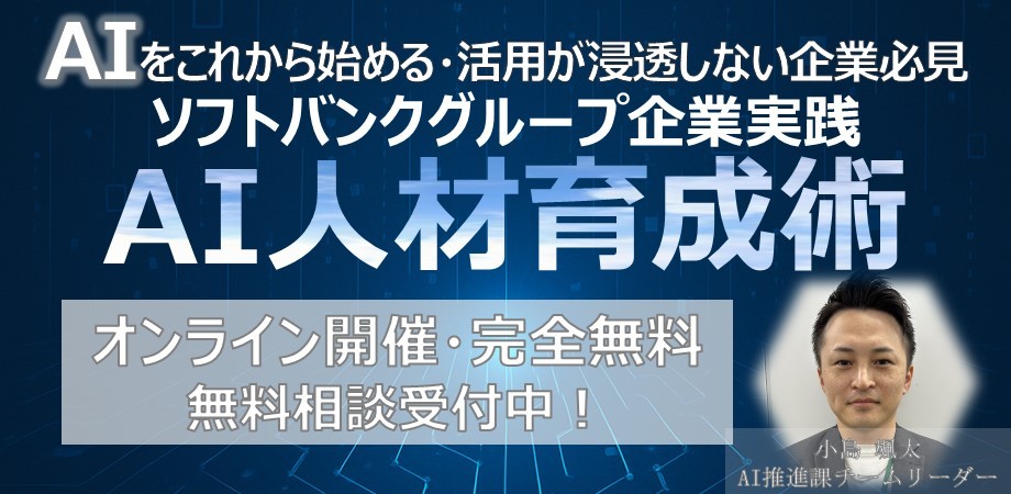 本セミナーでは、ソフトバンクグループが数千人規模で取り組んできたAI人材育成プログラムの実践ノウハウを公開。