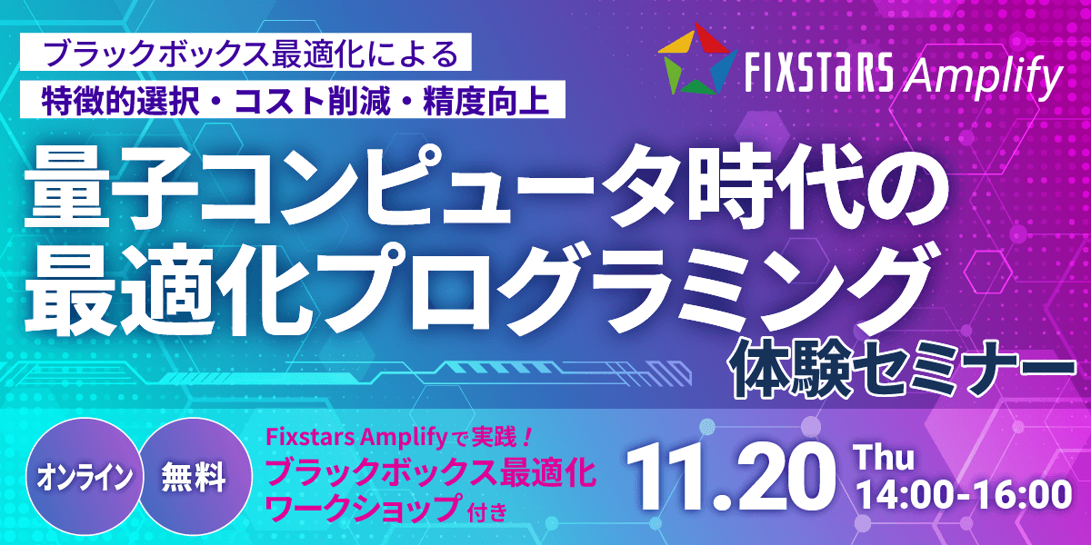 【11/20開催】量子コンピュータ時代の最適化プログラミング体験セミナー~ブラックボックス最適化による特微量選択・コスト削減・精度向上~