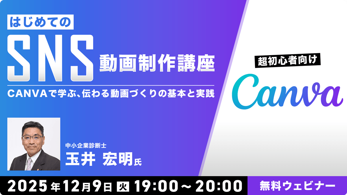 12月9日(月)19:00~ 【超初心者向け】はじめてのSNS動画制作講座 ~CANVAで学ぶ、伝わる動画づくりの基本と実践~