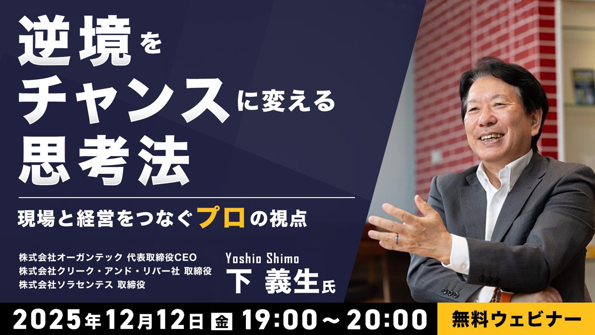 12月12日(金)19:00~ 逆境をチャンスに変える思考法 〜現場と経営をつなぐ“プロ”の視点〜
