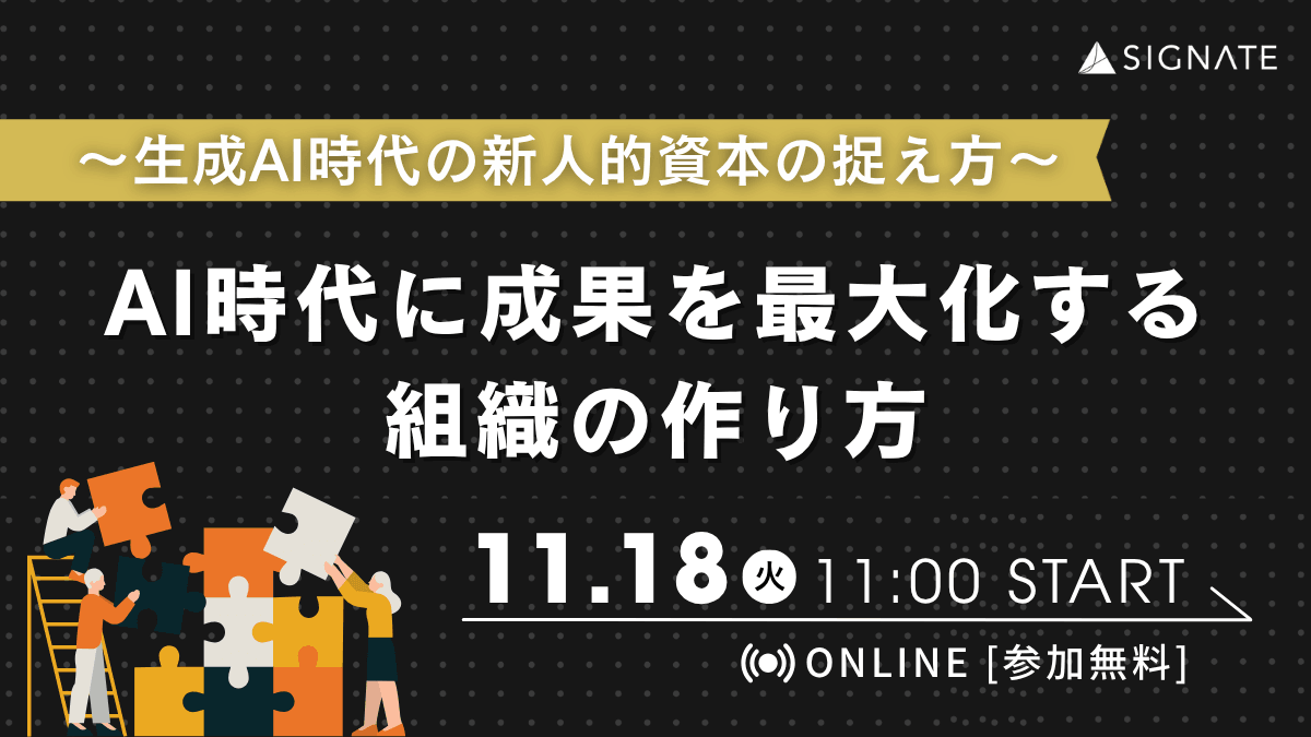 本ウェビナーでは、SIGNATEの1000社以上のDX支援実績から見えた、AI時代に成果を最大化する「デジタル人的資本」の具体的な実現方法を徹底解説します。人事・経営者必見の内容です。