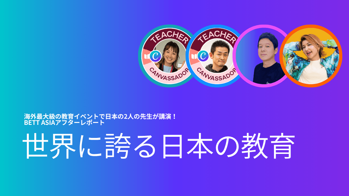 世界最大級の教育テクノロジーイベント「Bett Asia」に日本から2名のTeacher Canvassadorの先生とCanvaチームが参加し、アジア各国の教育現場で活躍する教育者のみなさんに、日本の先生方の先進的な取り組みを発信してきました。