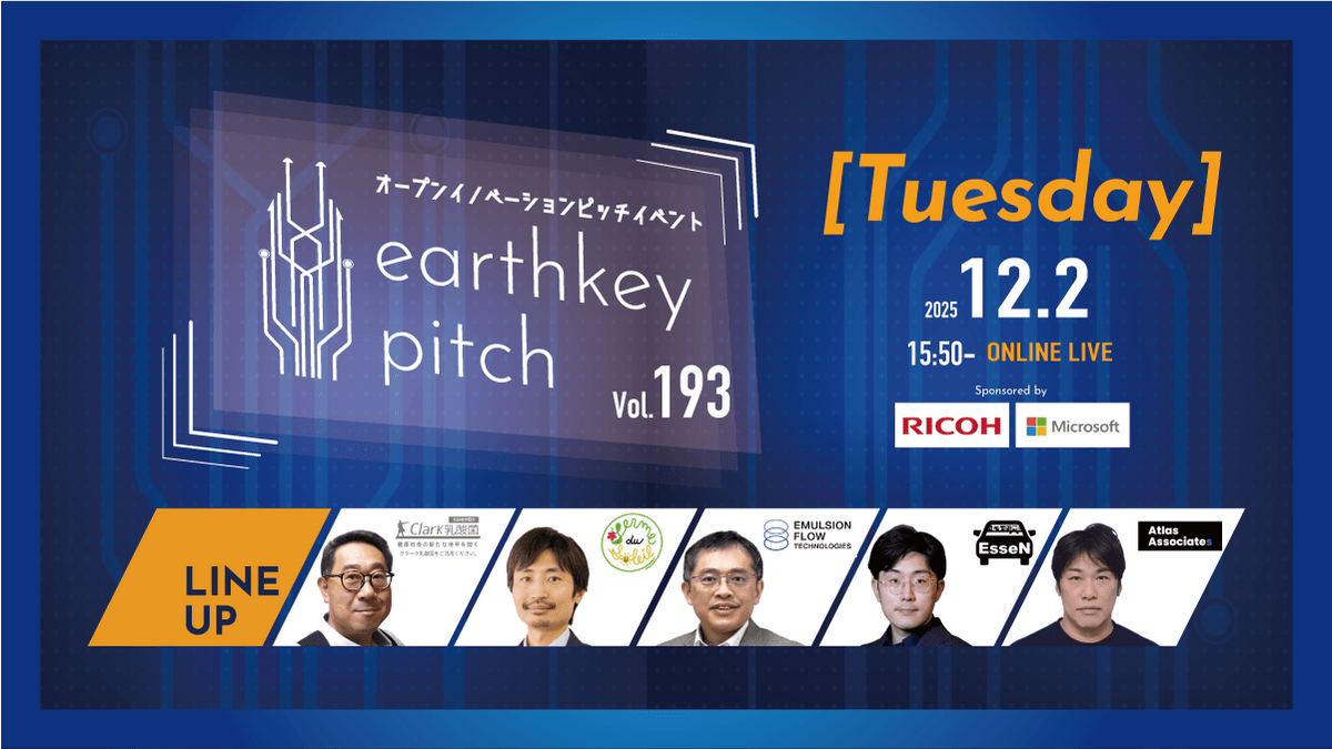 【新規事業担当者必見!!】未来を覗けるスタートアップピッチイベント 【earthkey pitch vol.193】