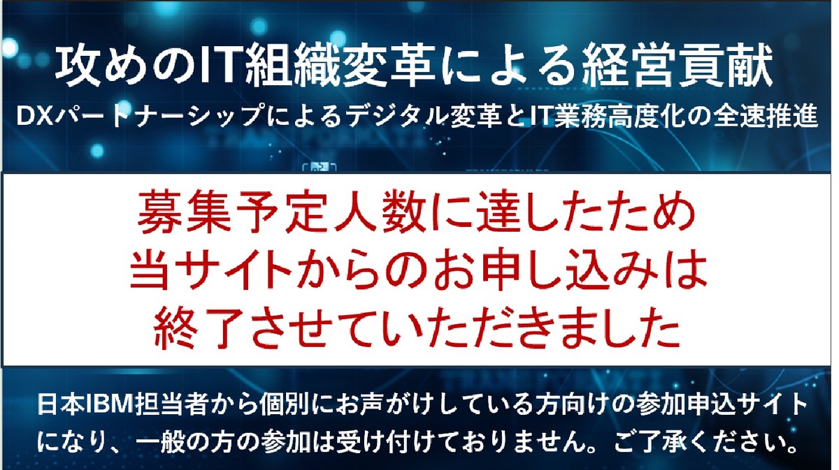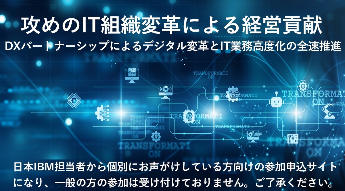 ※日本IBM担当者から個別にお声がけしている方向けの参加申込サイトとなり、一般の方の参加は受け付けておりません。ご了承ください。