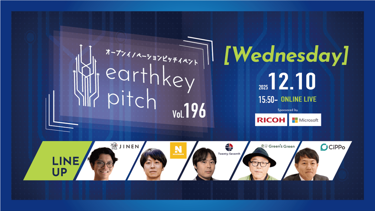 【新規事業担当者必見!!】未来を覗けるスタートアップピッチイベント 【earthkey pitch vol.196】
