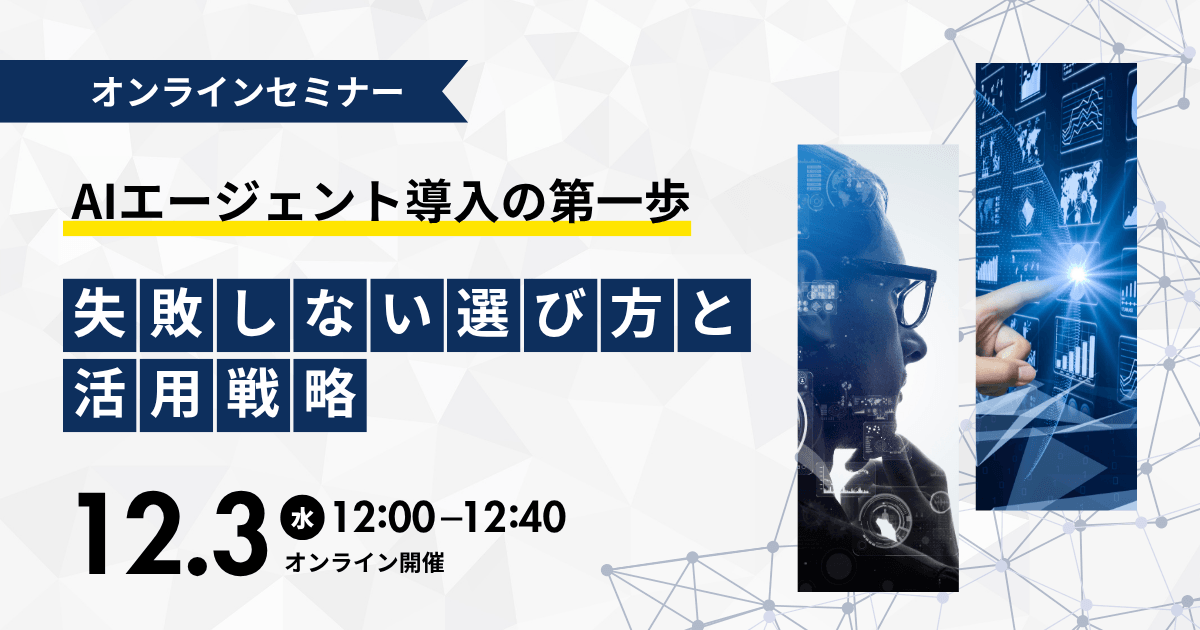 生成AIの進化に伴い、業務や顧客対応を支える「AIエージェント」への関心が高まっています。一方で、種類や組み合わせ、着手すべき業務の選び方に迷う企業も少なくありません。 本ウェビナーでは、代表的なエージェントの類型と特徴を整理し、導入判断に効く選定基準を事例とともに解説します。さらに、非エンジニアでも多数のエージェントを使いこなすコツや、弊社のエージェント作成サービスで置き換え可能な業務を、明日から試せる具体度でご紹介いたします。