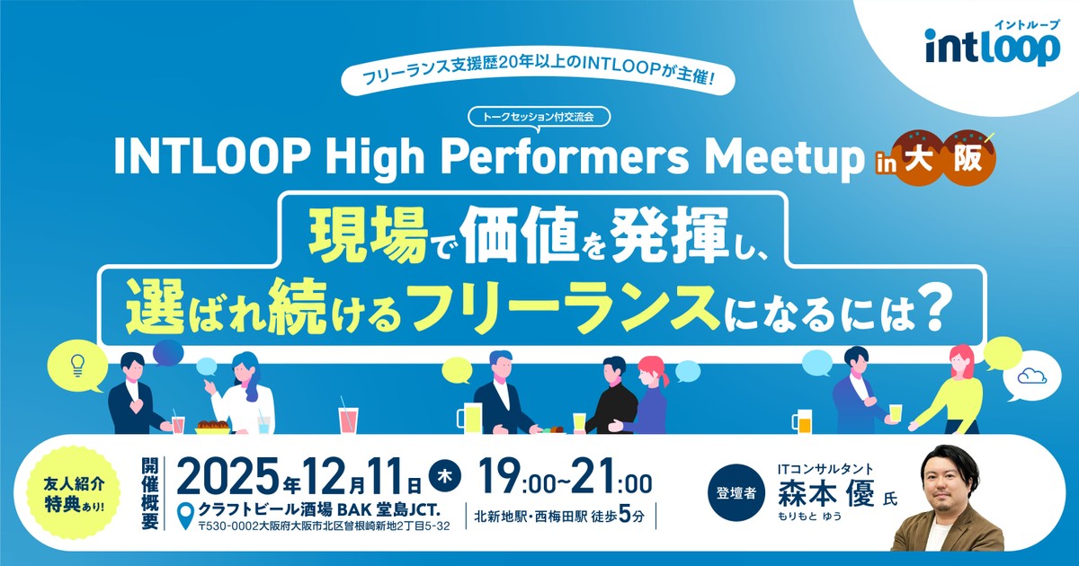 【無料・食事付|トークセッション交流会】現場で価値を発揮し、選ばれ続けるフリーランスになるには?|INTLOOP High Performers Meetup