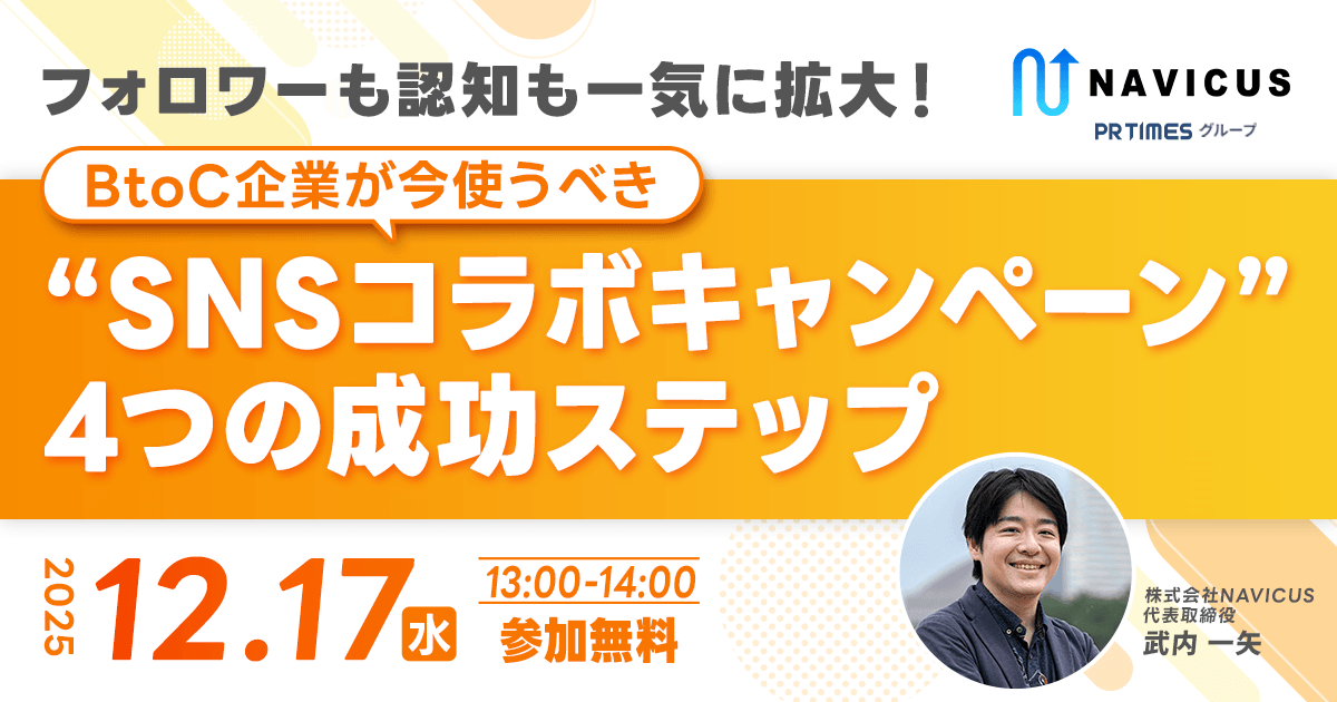 【12/17開催!】無料ウェビナー『フォロワーも認知も一気に拡大!BtoC企業が今使うべき“SNSコラボキャンペーン”4つの成功ステップ』