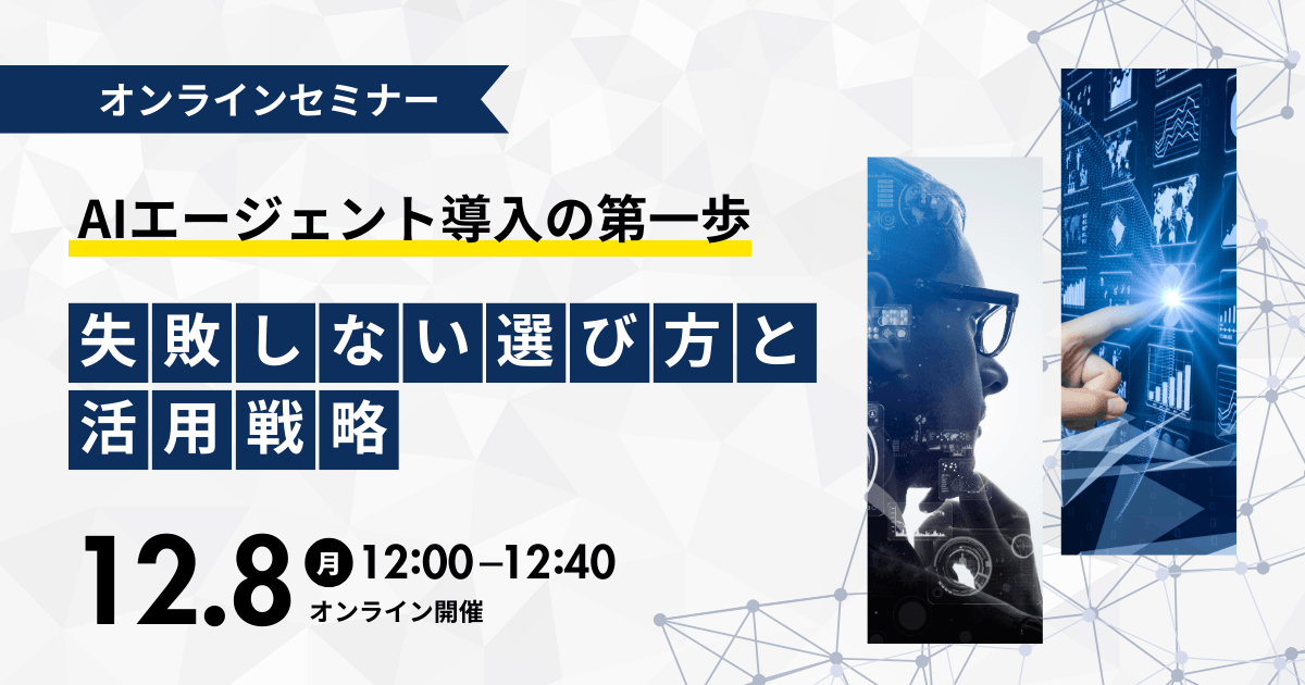 生成AIの進化に伴い、業務や顧客対応を支える「AIエージェント」への関心が高まっています。一方で、種類や組み合わせ、着手すべき業務の選び方に迷う企業も少なくありません。 本ウェビナーでは、代表的なエージェントの類型と特徴を整理し、導入判断に効く選定基準を事例とともに解説します。さらに、非エンジニアでも多数のエージェントを使いこなすコツや、弊社のエージェント作成サービスで置き換え可能な業務を、明日から試せる具体度でご紹介いたします。