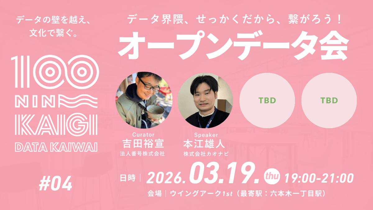 2026年03月19日開催|データ界隈100人カイギ#04|オープンデータ界隈