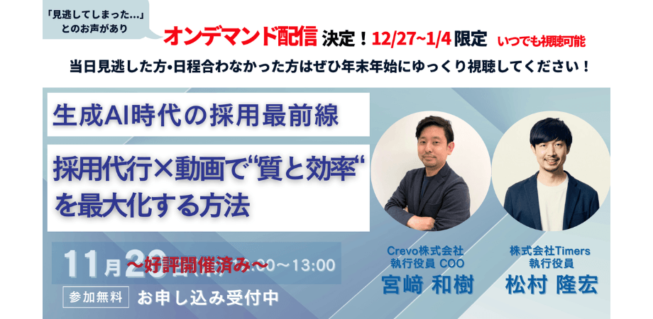 先日開催の**生成AI時代の採用最前線:採用代行×動画で“質と効率“を最大化する方法**に
