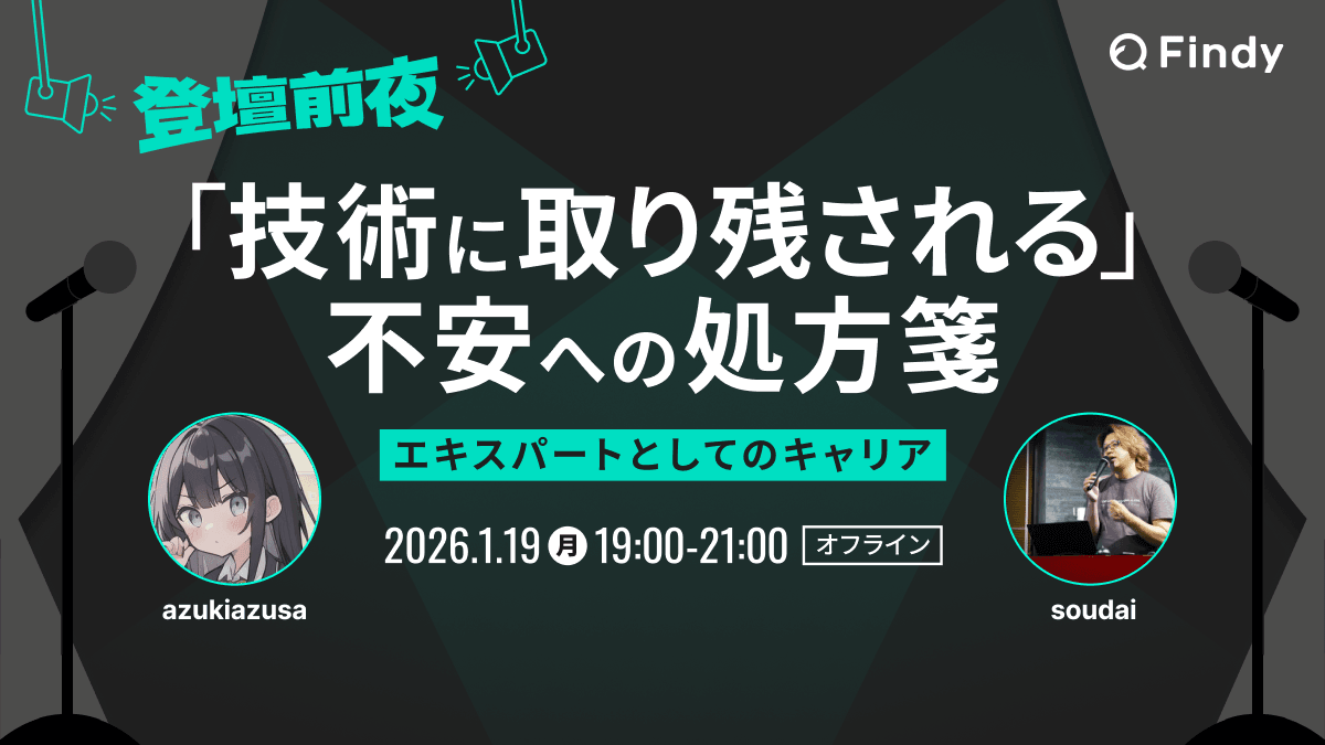 | 19:05~ | 登壇者ご講演 ・azukiazusaさん ・soudaiさん |