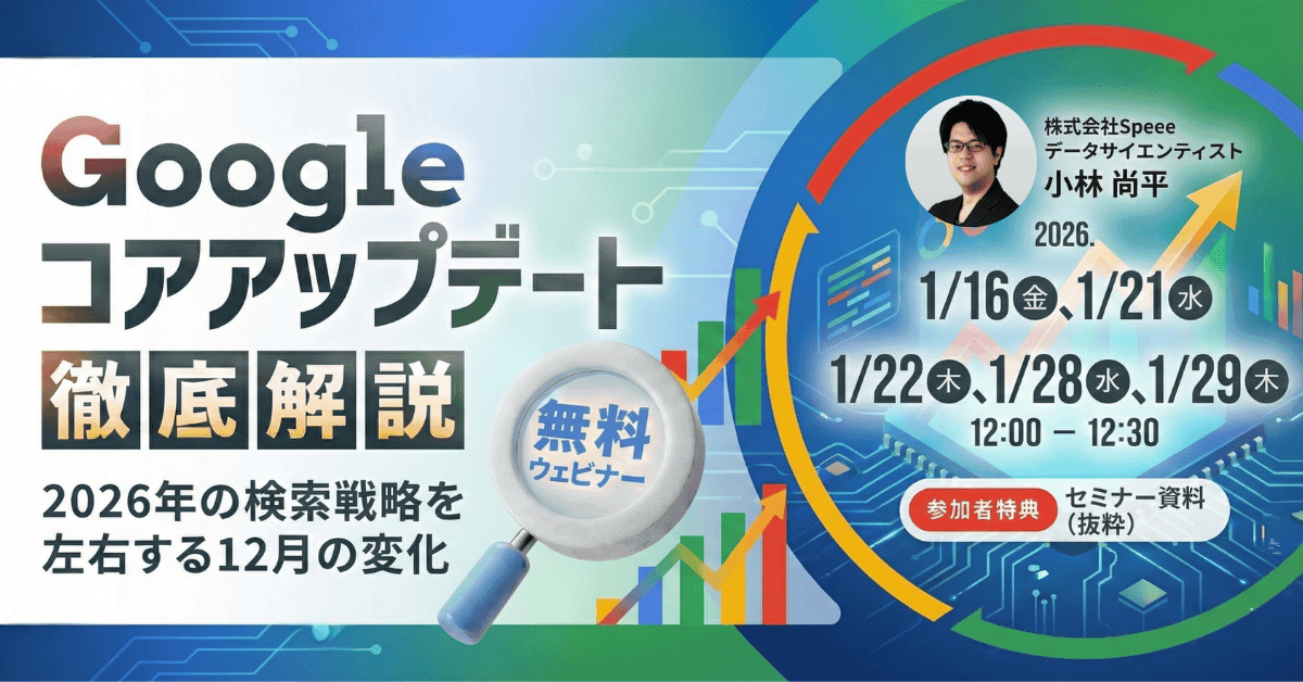 【無料SEOウェビナー】[1/16開催]Googleコアアップデート徹底解説 ─ 2026年の検索戦略を左右する12月の変化 | 株式会社Speee [特典あり]
