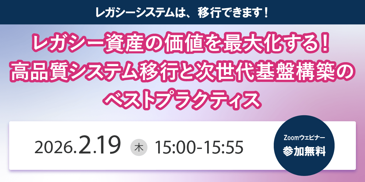 2/19(水)IT導入検討者向け「レガシーシステム移行支援ウェビナー」開催のお知らせ