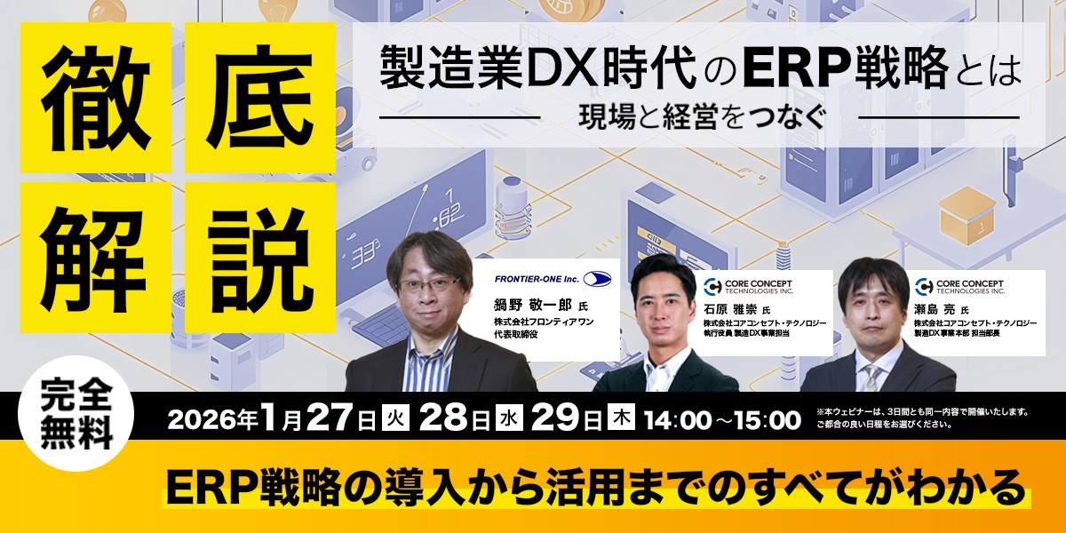 本ウェビナーを通じて、製造業のERPに関する具体的なノウハウや導入後の活用方法を学び、皆様の企業における次なる成長のヒントを手にしていただければ幸いです。