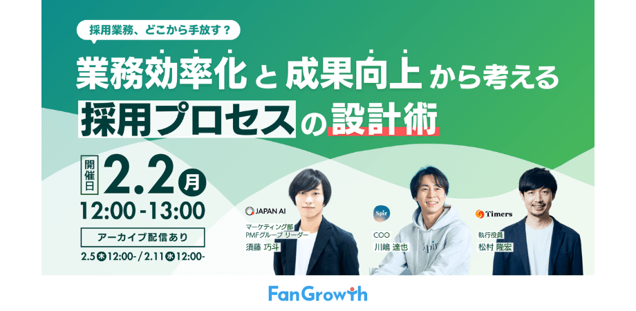 2月2日(月)12:00~開催にて「採用業務、どこから手放す? 業務効率化と成果向上から考える、採用プロセスの設計術」セミナーのお知らせです。