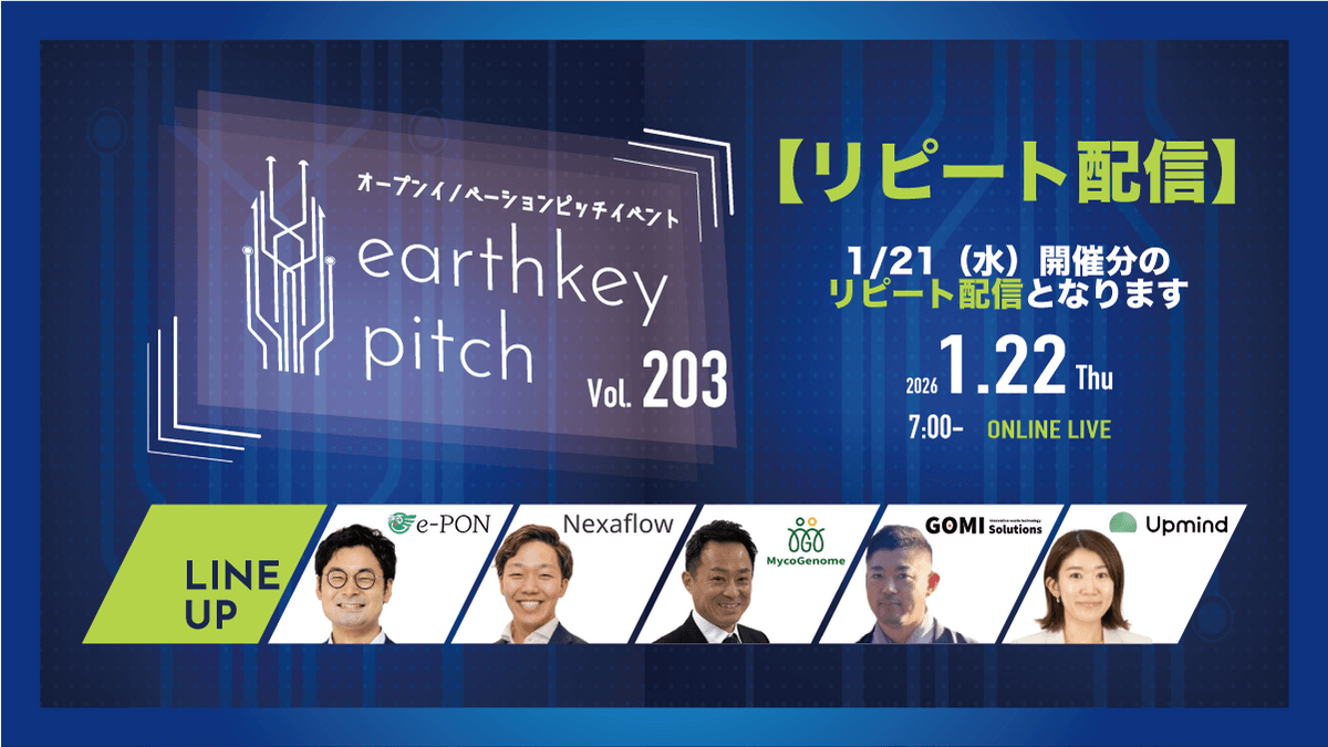 【1/21(水)開催分リピート配信】 -earthkey pitch vol.203 リピート配信- 1/22 7:00回