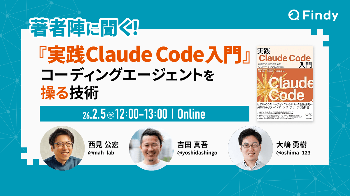 書籍『実践Claude Code入門』の出版を記念して、株式会社ジェネラティブエージェンツの西見公宏さん・大嶋勇樹さん・吉田真吾さんにご登壇いただきます。