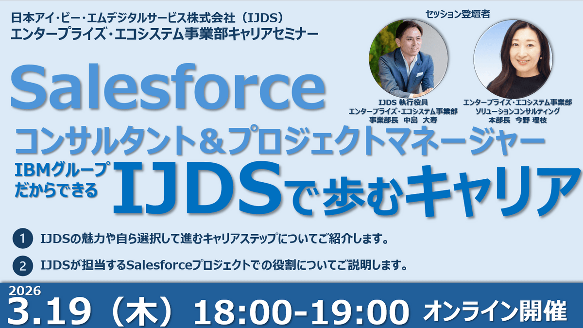 【3/19開催キャリアセミナー】IBMグループ だからできるIJDSで歩むキャリア「Salesforce コンサルタント&プロジェクトマネージャー」