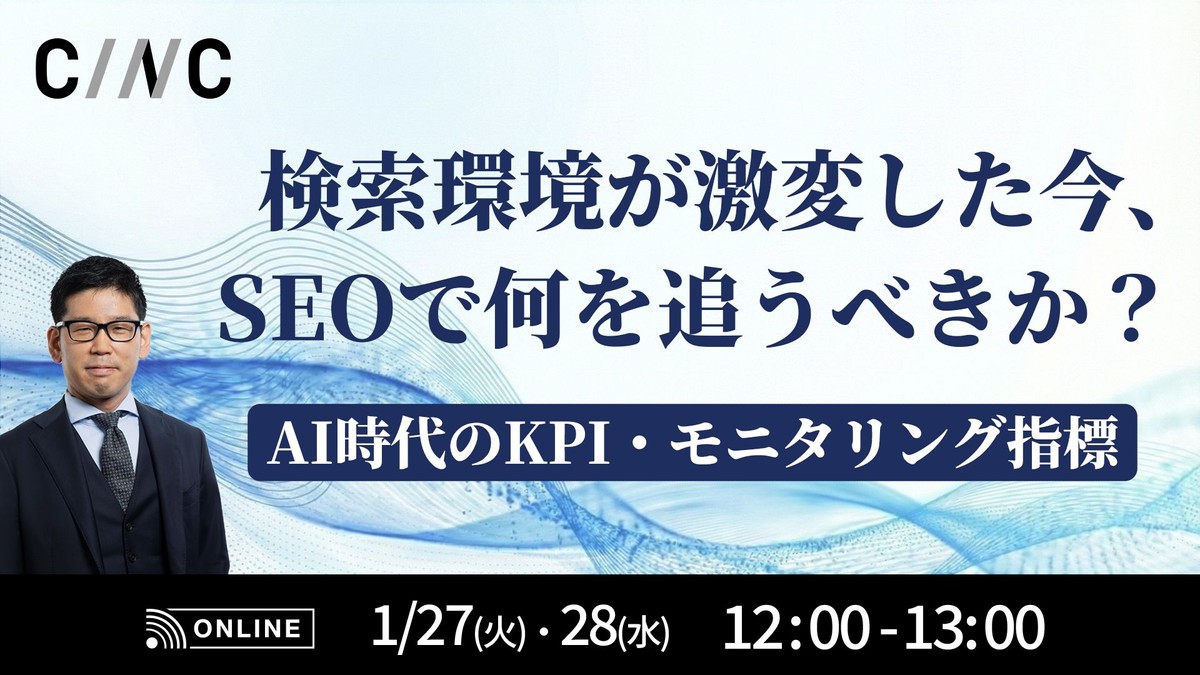 本セミナーでは、SEOとAI検索最適化の目的や役割を整理したうえで、いま設計すべきKPI・モニタリング指標を具体的に解説します。
